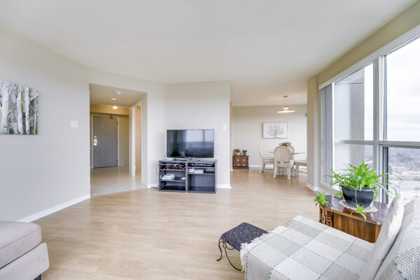 WELCOME TO THIS VERY CLEAN, WELL-MAINTAINED 2 BEDROOM, 2 BATHROOM CONDO WITH SPECTACULAR PANORAMIC VIEWS. GENEROUS LIVING SPACE SHOWCASING 1055 SQ. FEET. FEATURING LAMINATE FLOORING, QUARTZ COUNTERS IN THE KITCHEN & BATHROOM AND FRESHLY PAINTED THROUGHOUT. COMPLETE WITH 5 APPLIANCES, ENSUITE LAUNDRY, 1 UNDERGROUND PARKING SPOT & LOCKER. REASONABLE MAINTENANCE FEES INCLUDE ALL UTILITIES, ROGERS VIP CABLE TV, HIGH SPEED INTERNET, USE OF MULTI-RECREATION CENTRE & 24-HOUR LIVE SECURITY.